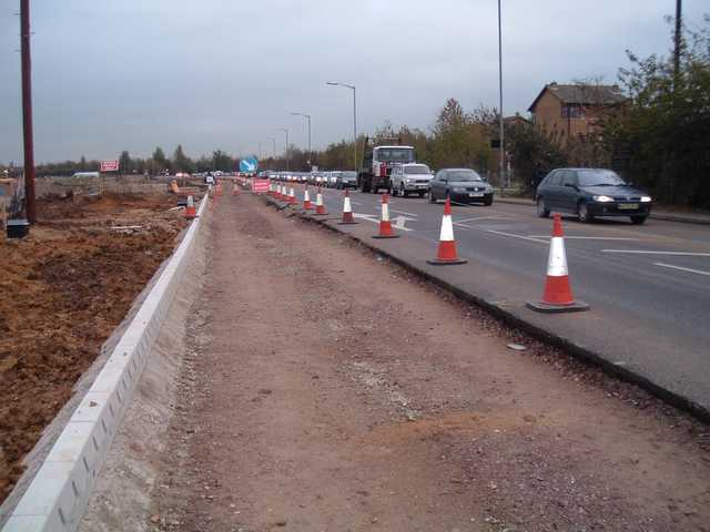 The view west showing the widening of Kings Hedges Road which is
