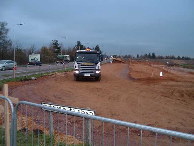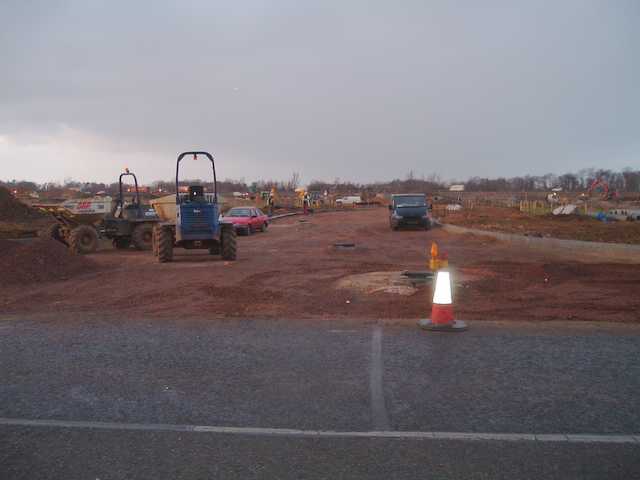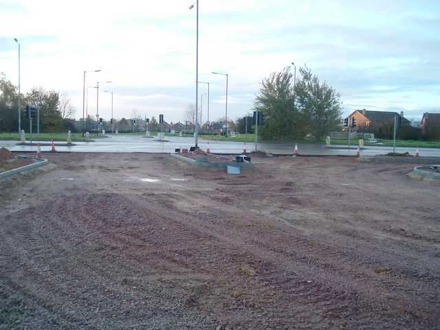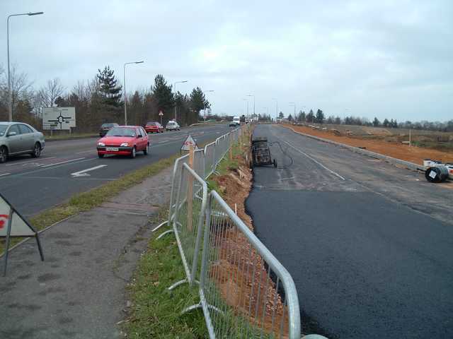 A view south. Note that the new bit of road to the left is wider than