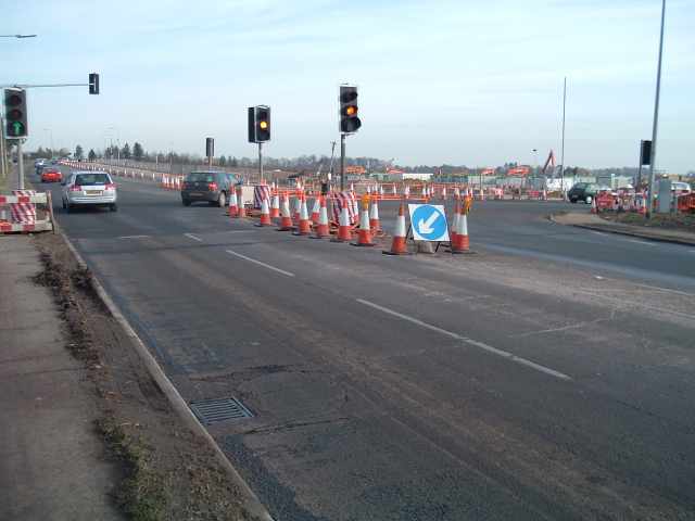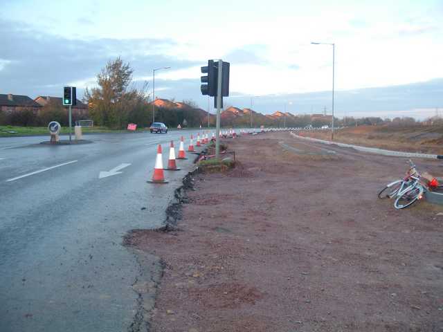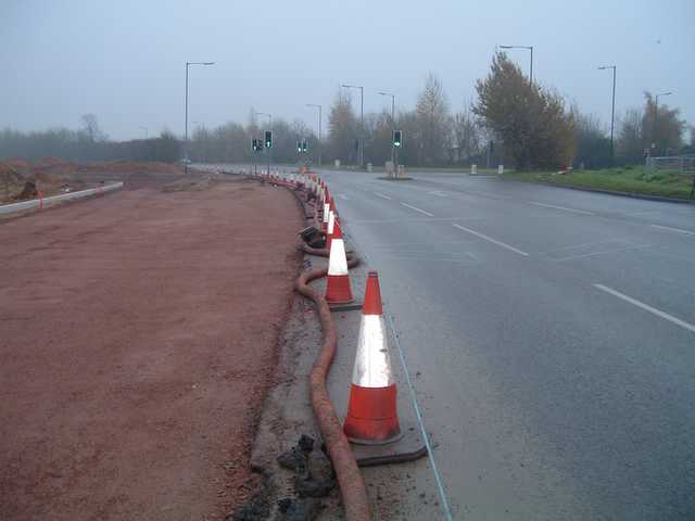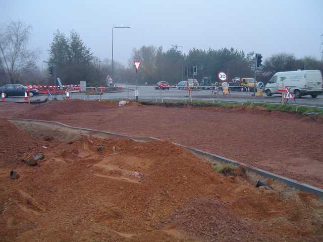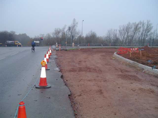 This junction is being significantly widened and the turn left into