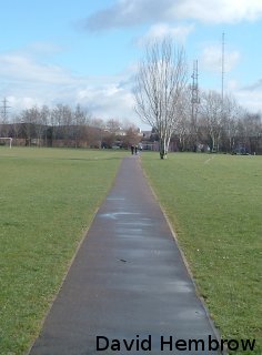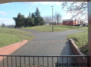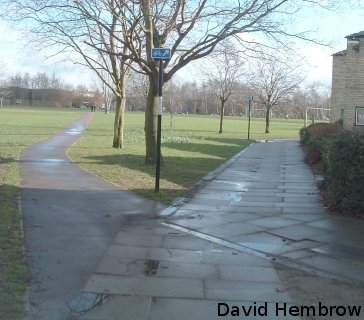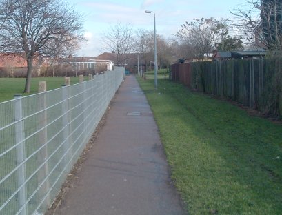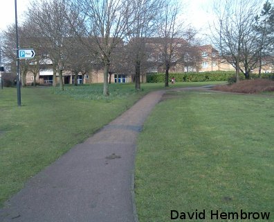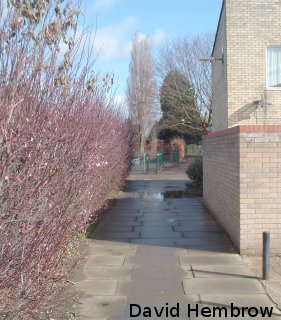 From Cameron Road to Nun's Way Rec. An entrance to the school can be seen on the left, providing a great traffic free route for children.