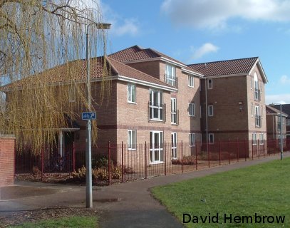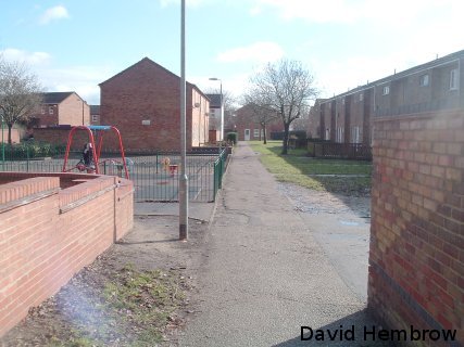 Old vs. new. The first photo shows housing which fronts onto the park. The second shows what is nearly a small "gated community" of privately owned apartments built in the 2000s in the middle of the estate. These have a fence between themselves and the park meaning there is no easy way for the people living in these apartments to use the park and that they are cut off from the rest of the local people. Instead, their entrances are on the other side in the car park.