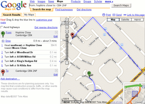 Sadly, not only do newer developments not match King's Hedges, they often seem to try their hardest to defeat what was achieved. For instance, look at the distance you have to travel between Hopkins Close and the Carlton Way shops. They are only about 200 m apart, and there is space for a cut-through by foot or by car, but the roads have been designed apparently in order to change the journey of a few hundred metres by foot into a mile by car. Once people hop in their car for this they are as likely to end up driving to the out of town supermarket, aiding the demise of local shops. The layout of modern housing estates has a lot to answer for: