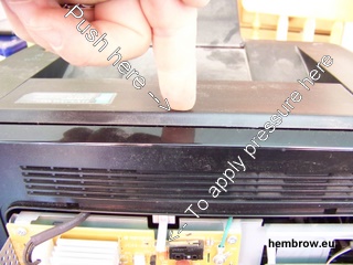 Note that you should never remove the cover unless you know how to protect yourself from shocks. Never remove the cover when the printer is plugged in as the power supply board is live and note that capacitors on the board can store very high voltages even when the printer is switched off and disconnected from the mains supply.
