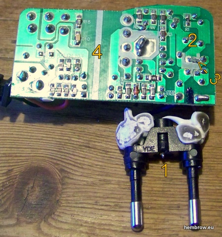 - On the positive side, the spacing between low and high voltage parts of the power supply is of the order of 6 mm, whch should be enough to make the thing safe.