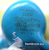 - The blue ceramic capacitor which links between the high and low voltage sides of the power supply is one of the most important safety critical parts of a power supply like this because if it were to fail short circuit it could connect high voltages to the output. This capacitor appears to be a proper X1 / Y1 rated part which should fail open circuit. Some Chinese power supplies skimp on this safety critical part.