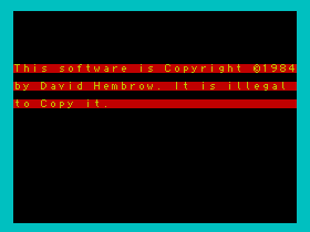 For a very long time this game was not available anywhere online. As well as the small number sold, I also gave copies to friends back in the 1980s and no doubt they tried to make copies for other friends, but this game was not easy to copy. I seemingly stumbled upon a copy protection mechanism worked reasonably well. This is how it worked: